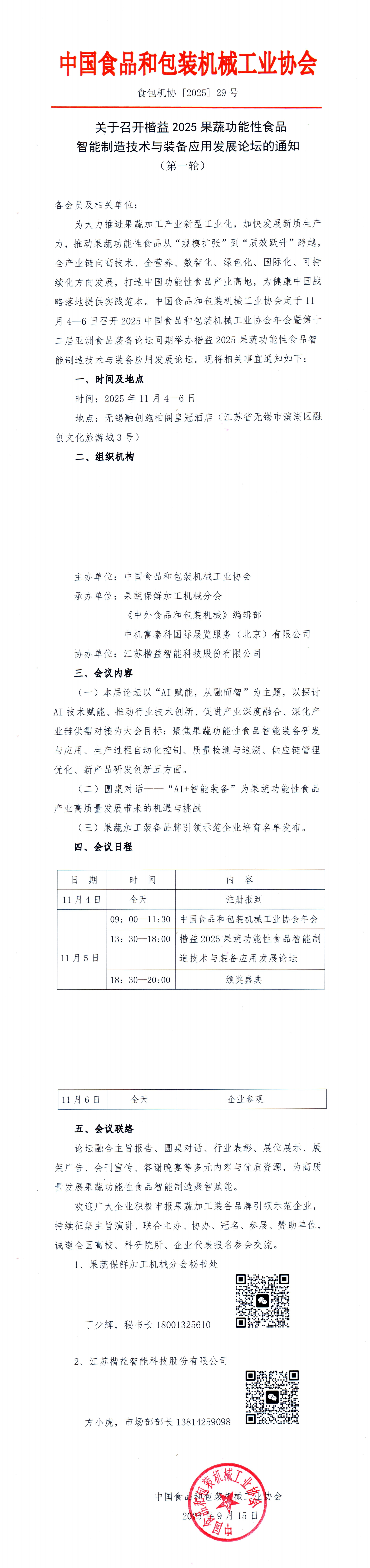 歡迎訪問中國食品和包裝機械工業協會網站 當前時間: